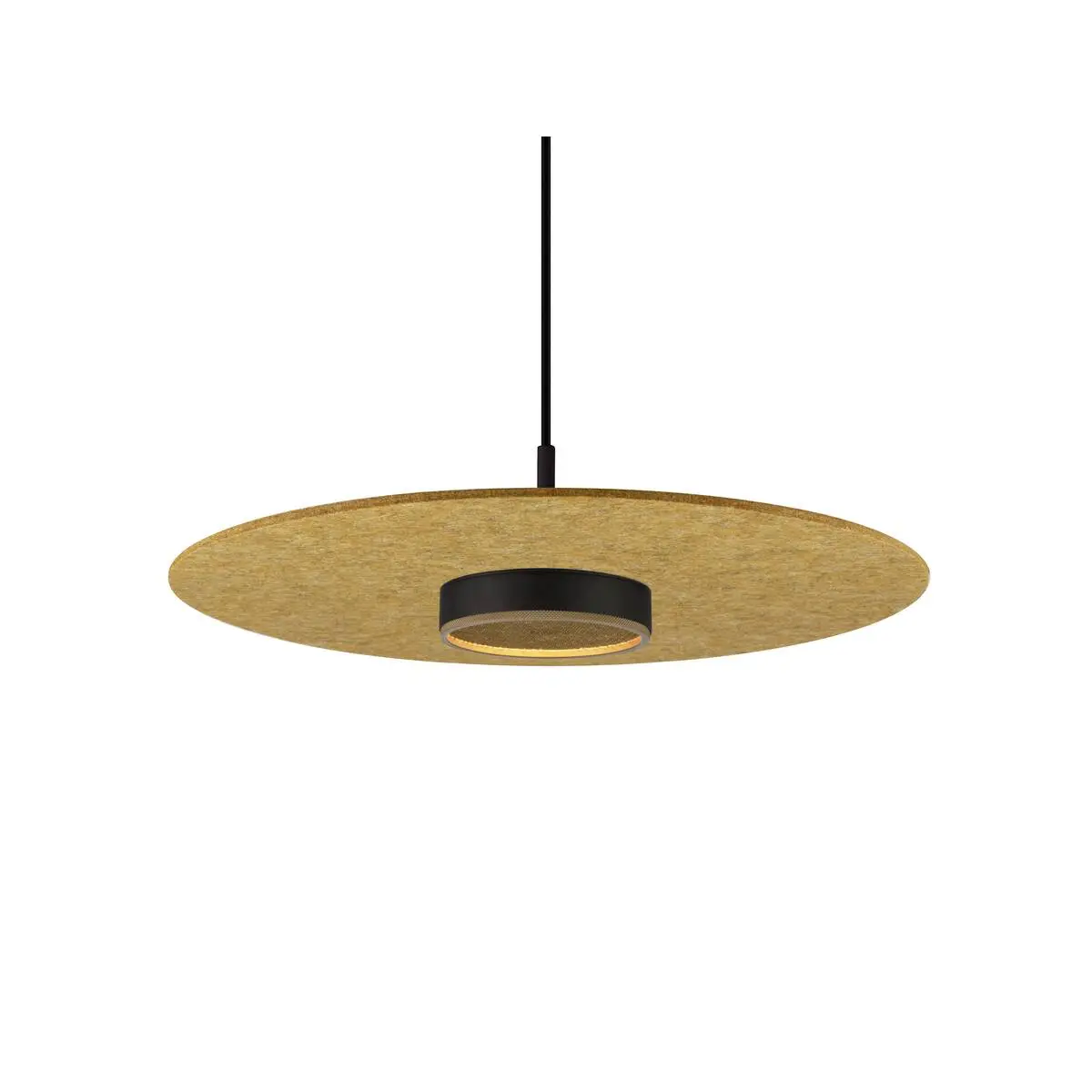 SLV Grip! Filz-Lampenschirm Ocker 1010408 kommt in einer Trendfarbe und in superflachem Design zum Einsatz, wodurch er der Leuchte einen edlen Charakter verleiht. Er lässt sich durch lösen der Pendelleitung auf die Leuchte aufbauen und misst einen Durchmesser von 50cm, mit einer Höhe in 0.6cm.