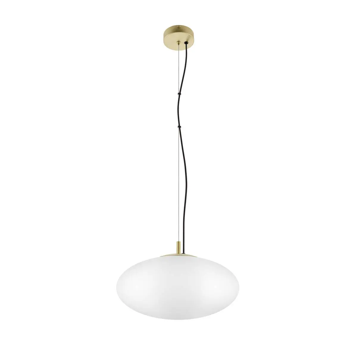 SLV Olypso 40 Hängeleuchte 1010414 kommt mit einem klassischen Design im Retro Stil zum Einsatz, wobei der ovale Opalglas Lampenschirm an eine trendfarbige goldene Armatur verläuft und im Projekt edle Lichttrends setzt. Geliefert wird sie mit einer individuell einstellbaren Pendelabhängung aus Stahlseil und Textilleitung, die sich optimal der Situation anpasst. Die SLV Olypso 40 Hängeleuchte ist mit einer E27 Fassung ausgerüstet, zum selber Wechseln von Lampen mit einer maximalen Leistung von 40 Watt, welche passend als Zubehör mitbestellt werden können und ist dimmbar mit einem dimmbaren Leuchtmittel. Sie trägt eine saubere Verarbeitung in hoher Qualität, die der Hersteller mit 5 Jahren Garantie absichert. Unsere SLV Olypso 40 Hängeleuchte ist aus Stahl hergestellt und misst einen Durchmesser von 39.9cm, mit einer Höhe in 25.3cm.