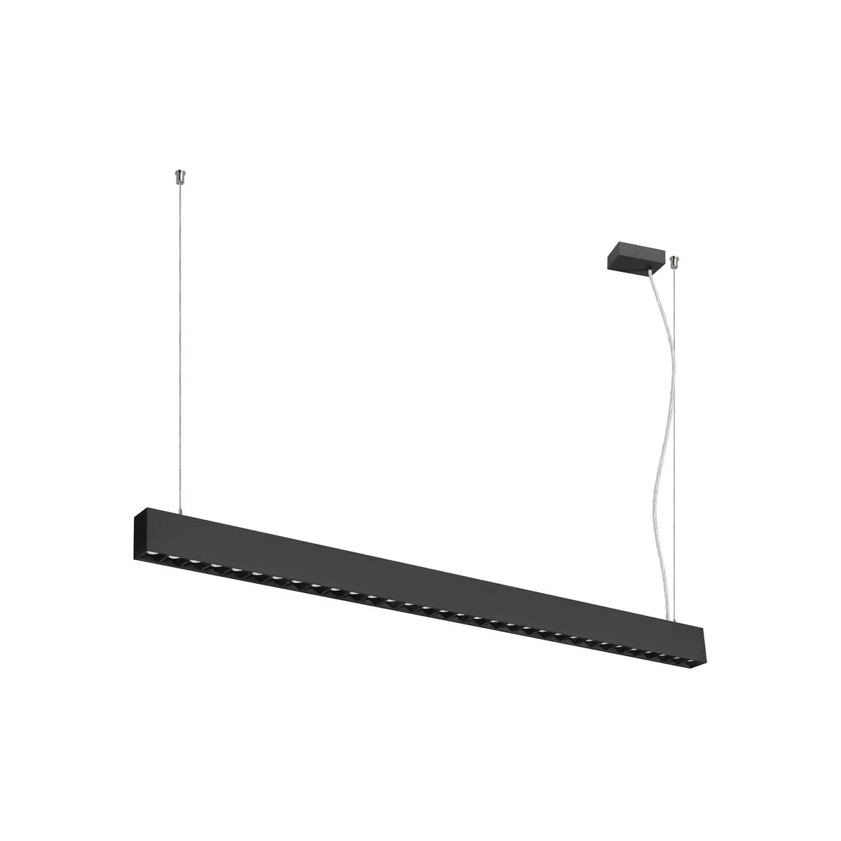 SLV Glenos Pro LED-Pendelleuchte 1010512 kommt mit einem linearen, edlen Design zum Einsatz wobei die Lichtquelle leicht rückversetzt ist und dank Mikroreflektor und UGR16 nahezu blendfrei scheint. Ein indirekter Lichtanteil gibt zusätzlich stimmungsvolles Licht nach oben ab und sorgt für ein besonderes Ambiente. Die SLV Glenos Pro LED-Pendelleuchte bietet den Vorteil durch interne Durchgangsverdrahtung und mitgeliefertem Verbindungsmaterial, eine nahtlose Verbindung von bis zu 30 Leuchten. Die SLV Glenos Pro LED-Pendelleuchte leistet 60 Watt, bei einem Lichtstrom von 7400 Lumen und einer neutralweißen Farbtemperatur in 4000 Kelvin und erzielt effiziente 123 Lumen pro Watt. Ihre Qualität ist mit 50.000 Stunden in L80B10 hoch, die der Hersteller mit 5 Jahren Garantie absichert. Sie ist DALI dimmbar und gibt Farben mit einem CRI 90 natürlich, brillant wieder. Unsere SLV Glenos Pro LED-Pendelleuchte trägt ein Leuchtengehäuse aus hochwertigem Aluminium und misst eine Länge von 128.5cm, eine Breite mit 4.8cm sowie eine Höhe in 7.6cm und wird mit einer individuell einstellbaren Pendellänge von 210cm geliefert.