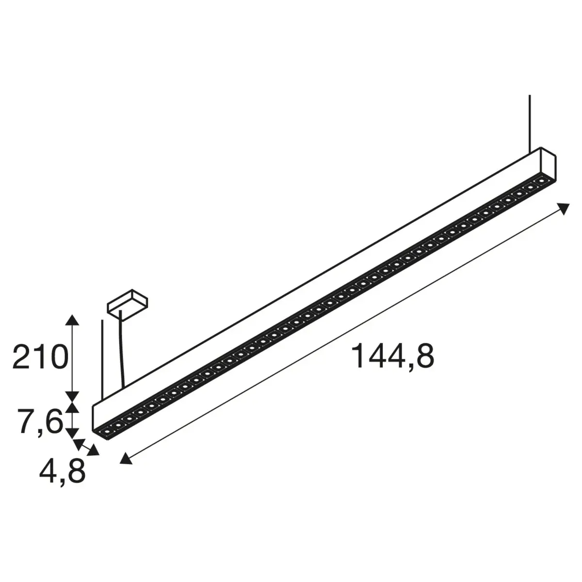 SLV Glenos Pro LED-Pendelleuchte 1010516 kommt mit einem eleganten, linearen Design zum Einsatz und ist mit einer leicht rückversetzen Lichtquelle versehen, die mit einem Mikroreflektor und UGR16 nahezu blendfrei leuchtet. Der indirekte Lichtanteil mit einem Lichtschein nach oben sorgt zudem für viel Wohlfühlstimmung. Sie ist durchgangsverdrahtet und wird mit Verbindungsmaterial geliefert, wodurch sich bis zu 30 Leuchten nahtlos miteinander verbinden lassen. Die SLV Glenos Pro LED-Pendelleuchte leistet 70 Watt, bei einem Lichtstrom von 8450 Lumen und einer neutralweißen Farbtemperatur in 4000 Kelvin und erzielt so effiziente 120 Lumen pro Watt. Die Qualität ist mit 50.000 Stunden in L80B10 hoch, die der Hersteller mit 5 Jahren Garantie absichert. Ausgerüstet mit CRI 90 sorgt sie für eine natürlich, brillante Farbwiedergabe und ist DALI dimmbar. Unsere SLV Glenos Pro LED-Pendelleuchte trägt ein schwarzes Leuchtengehäuse aus hochwertigem Aluminium und misst eine Länge von 144.8cm, eine Breite mit 4.8cm sowie eine Höhe in 7.6cm und wird mit einer individuell einstellbaren Pendellänge von 210cm geliefert.