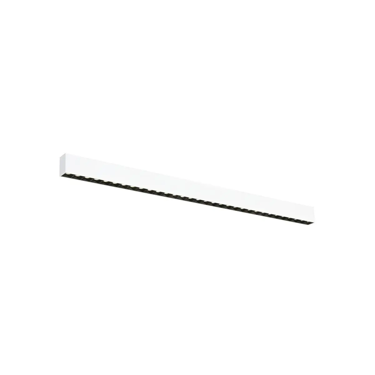 SLV Glenos Pro LED-Deckenleuchte 1010519 trägt ein edles Design, wobei das weiße lineare Lampengehäuse mit einer Kontrast schwarz rückversetzen Lichtquelle eine besondere Optik erzeugt und mit UGR19 nahezu blendfrei leuchtet. Sie ist Durchgangsverdrahtet und wird inklusive Verbindungsmaterial geliefert, womit sich bis zu 30 Leuchten nahtlos verbinden lassen. Die SLV Glenos Pro LED-Deckenleuchte leistet 30 Watt, bei einem Lichtstrom von 3900 Lumen und einer neutralweißen Farbtemperatur in 4000 Kelvin und erzielt so effiziente 130 Lumen pro Watt. Die Qualität ist mit 50.000 Stunden in L80B10 hoch, die der Hersteller mit 5 Jahren Garantie absichert. Sie ist DALI dimmbar und leuchtet Farben mit einem CRI 90 natürlich, brillant aus. Unsere SLV Glenos Pro LED-Deckenleuchte trägt ein Leuchtengehäuse aus hochwertigem Aluminium und misst eine Länge von 129cm, eine Breite mit 5.3cm sowie eine Höhe in 7.8cm.