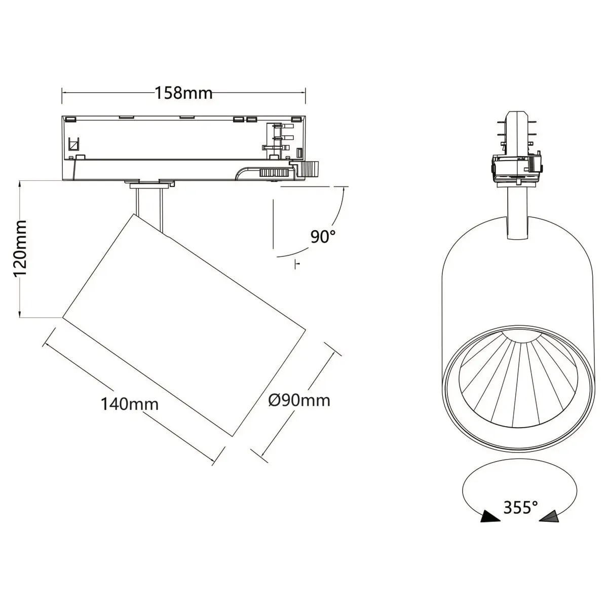 SLV Trackspot P 3-Phasen LED-Strahler 1010595 setzt in seinem minimalistischen Design klare Statements und eignet sich hervorragend für professionelle Projekte und glänzt dort mit Lichtqualität auf ganzer Linie. Er ist Multi Lumen fähig und über einen Dipschalter in folgende Leistungsstufen einstellbar: 33W, 34W, 35W sowie 38W und erzielt damit folgende Lichtströme: 4960lm, 5230lm, 5490lm und 5750lm. Seine Farbtemperatur ist mit 3000 Kelvin warmweiß, trägt einen Abstrahlwinkel in 36° und erreicht so effiziente 156 Lumen pro Watt, mit langlebigen 50.000 Stunden und L80B10, die der Hersteller zusätzlich mit 5 Jahren Garantie absichert. Der SLV Trackspot P 3-Phasen LED-Strahler trägt eine saubere Verarbeitung in hoher Qualität und ist idealerweise um 355° drehbar und um 90° schwenkbar, was eine zielorientierte Ausleuchtung sicherstellt. Ein CRI 90 sorgt für eine natürlich, brillante Ausleuchtung im Projekt, wodurch Waren bestmöglich hervorgehoben werden. Unser SLV Trackspot P 3-Phasen LED-Strahler ist aus hochwertigem Aluminium in der Farbe schwarz hergestellt und misst einen Durchmesser von 9cm, eine Länge mit 17.3cm sowie eine Höhe in 14cm.
