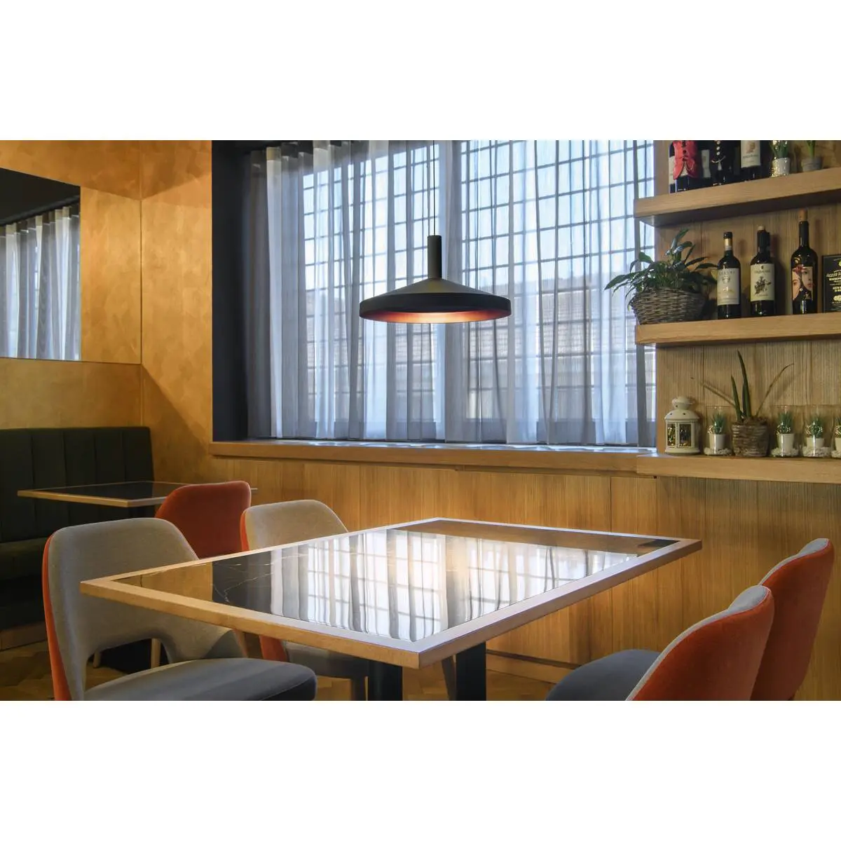 SLV Lalu Set Terta 36 LED-Hängelampe 1010791 überzeugt mit einem formschönen Stahllampenschirm in Trapezform mit einem Durchmesser von 36cm, wobei sie innenseitig zum Kontrast schwarzen Gehäuse in der Trendfarbe Bronze gehalten ist und den Raum optimal in Szene setzt. Sie ist dimmbar mit einem Phasenabschnitts-Dimmer und verfügt über CRI 90, wodurch sie Farben im Raum natürlich brillant wiedergibt. Die SLV Lalu Set Terta 36 LED-Hängelampe leistet 9.5 Watt, bei einem Maximallichtstrom von 800 Lumen und ist via CCT-Schalter in der Farbtemperatur zwischen 2700 Kelvin und 3000 Kelvin einstellbar. Sie besitzt eine hohe Qualität mit 50.000 Lebensstunden in L80B20, die der Hersteller zudem mit 5 Jahren Garantie absichert. Unsere SLV Lalu Set Terta 36 LED-Hängelampe trägt ein Gehäuse aus hochwertigem Aluminium und misst eine Höhe von 19cm und wird mit einer individuell kürzbaren Textilleitung in 200cm Länge geliefert.