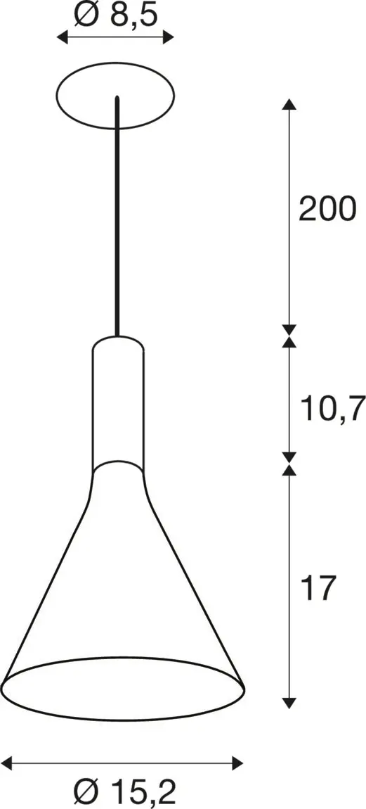 SLV Lalu Set Cone 15 Einbau LED-Hängelampe 1010793 setzt mit ihrem konisch geformten Stahllampenschirm Designtrends in jedem Objekt, wobei sie innseitig als Kontrast zum schwarzen Gehäuse in der Trendfarbe Bronze gehalten ist und elegante Statements im Raum versprüht. Sie lässt sich mit einem Phasenabschnitts-Dimmer dimmen und verfügt über CRI 90 für eine natürlich brillante Farbwiedergabe. Die SLV Lalu Set Cone 15 Einbau LED-Hängelampe leistet effiziente 9.5 Watt, bei einem Maximallichtstrom von 600 Lumen und ist via CCT-Schalter in der Lichttemperatur zwischen 2700 Kelvin und 3000 Kelvin einstellbar. Ihre Qualität ist mit langlebigen 50.000 Stunden in L80B20 hoch, welche der Hersteller mit 5 Jahren Garantie absichert. Unsere SLV Lalu Set Cone 15 Einbau LED-Hängelampe besitzt ein schwarzes Gehäuse aus hochwertigem Aluminium und misst einen Einbaudurchmesser von 6.8cm, mit einer Einbautiefe in 5cm. Ihr Durchmesser ist 15.2cm, mit einer Höhe in 27cm und wird mit einer individuell kürzbaren Textilleitung von 200cm Länge geliefert.