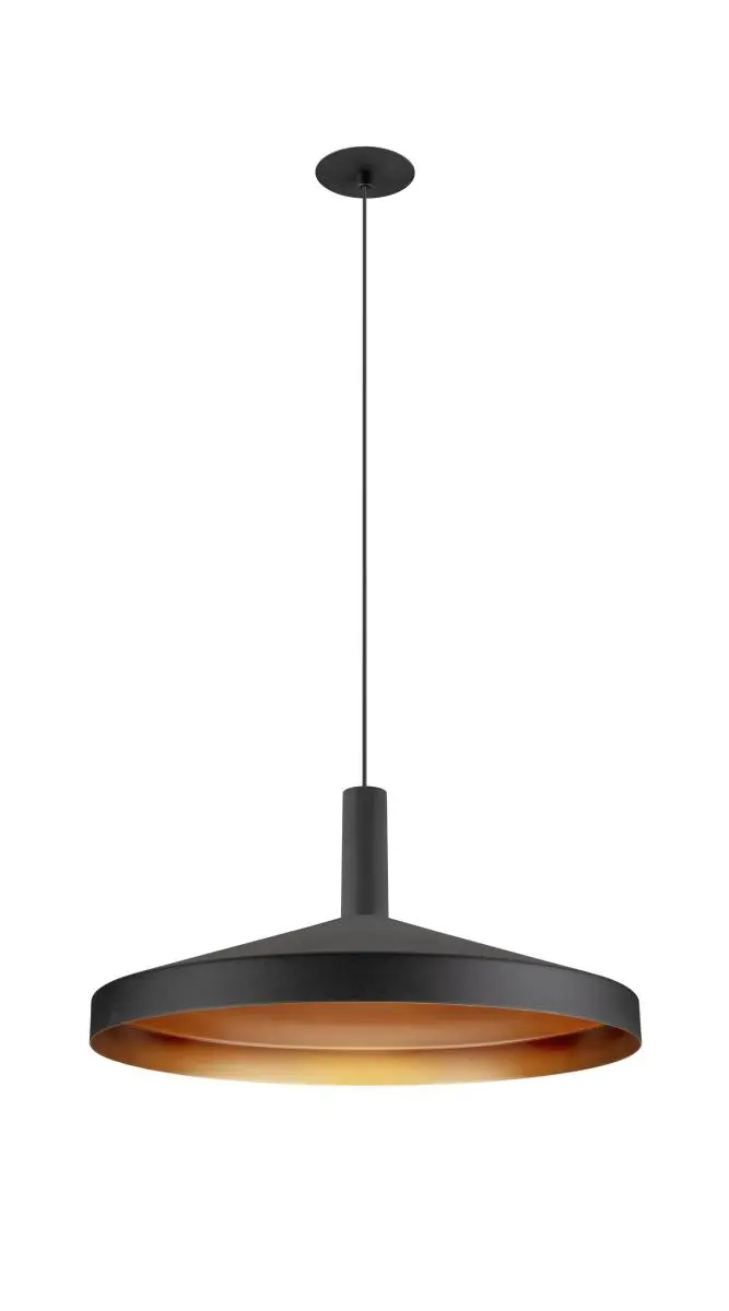 SLV Lalu Set Terta 36 Einbau LED-Hängelampe 1010795 setzt mit ihrem formschönen Stahllampenschirm in Trapezform und 36cm Durchmesser Blickfänge in jeden Raum, wobei sie innenseitig in der Trendfarbe Bronze gehalten ist und über Tresen und Tischen hochwertige Blickfänge schafft. Sie ist mit einem Phasenabschnitts-Dimmer dimmbar und leuchtet Farben mit einem CRI 90 natürlich und brillant aus. Die SLV Lalu Set Terta 36 Einbau LED-Hängelampe leistet effiziente 9.5 Watt, bei einem Maximallichtstrom von 800 Lumen und ist mittels CCT Schalter in Farbtemperatur zwischen 2700 Kelvin und 3000 Kelvin einstellbar. Ihre Qualität ist mit langlebigen 50.000 Stunden in L80B20 hoch, die der Hersteller zusätzlich mit 5 Jahren Garantie absichert. Unsere SLV Lalu Set Terta 36 Einbau LED-Hängelampe besitzt ein schwarzes Gehäuse aus hochwertigem Aluminium und misst einen Einbaudurchmesser von 6.8cm, mit einer Einbautiefe in 5cm. Der Durchmesser hingegen misst 36cm, mit einer Höhe in 19cm und wird mit einer individuell kürzbaren Textilleitung von 200cm Länge geliefert.