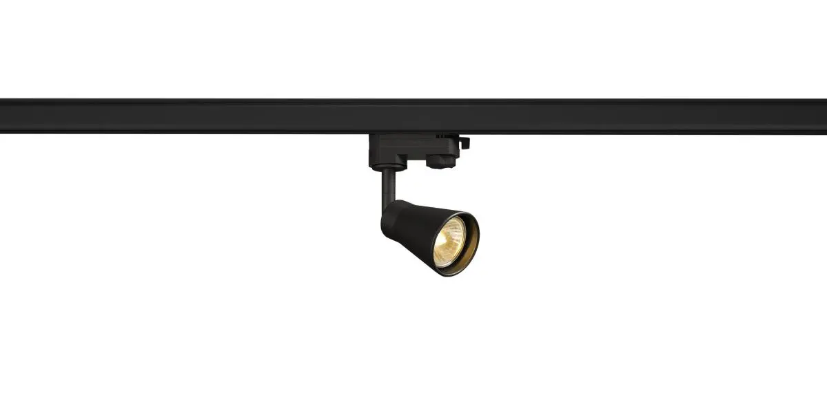 SLV Avo 3-Phasen Strahler 152640 kommt mit einem kompakten, konischen Design daher und überzeugt im Preis-Leistungs-Verhältnis auf ganzer Ebene. Für eine zielorientierte Ausrichtung ist er um 350° drehbar und um 90° schwenkbar und lässt sich mit einem dimmbaren Leuchtmittel dimmen. Der SLV Avo 3-Phasen Strahler ist mit einer GU10 Fassung ausgerüstet, zur Aufnahme von QPAR51 Lampen mit einer maximalen Leistung von 50 Watt, welche als Zubehör passend angeboten werden. Seine Qualität ist hochwertig, die der Hersteller mit 5 Jahren Garantie absichert. Unser SLV Avo 3-Phasen Strahler trägt ein schwarzes Lampengehäuse aus hochwertigem Aluminium und misst einen Durchmesser von 6.2cm, eine Länge mit 10.8cm sowie eine Höhe in 12cm.
