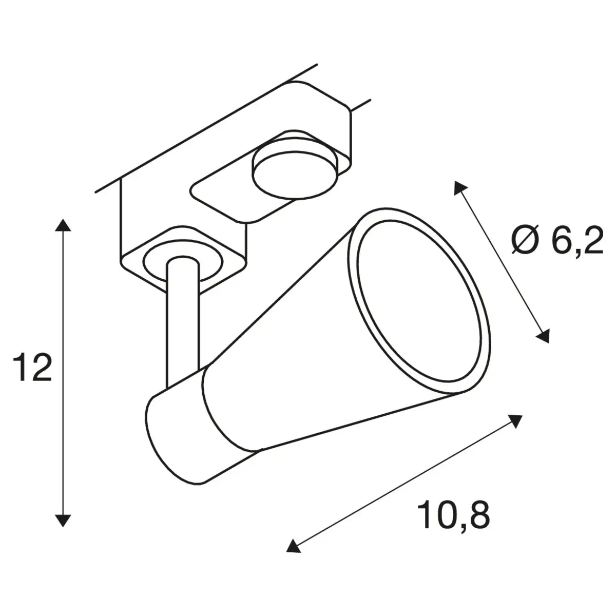 SLV Avo 3-Phasen Strahler 152641 kommt in modernem, konischen Design daher und setzt in gelungenen Einrichtungen edle Statements. Er lässt sich um 350° drehen und um 90° schwenken, wodurch er präzise ausrichtbar ist und lässt sich über ein dimmbares Leuchtmittel dimmen. Der SLV Avo 3-Phasen Strahler ist mit einer GU10 Fassung ausgestattet, zum selber tauschen von Lampen mit einer maximalen Leistung von 50 Watt, welche als externes Zubehör mitbestellt werden können. Er trägt eine hohe Qualität, die der Hersteller mit 5 Jahren Garantie absichert. Unser SLV Avo 3-Phasen Strahler ist aus hochwertigem Aluminium in der Farbe weiß hergestellt und misst einen Durchmesser von 6.2cm, eine Länge mit 10.8cm sowie eine Höhe in 12cm.